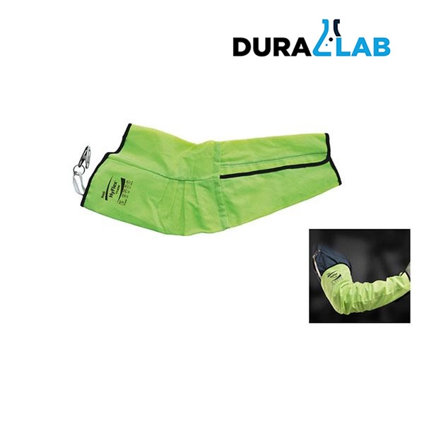 This Ansell HyFlex protective sleeve offers arm protection against mechanical hazards in the workplace and features a hi-vis colour to improve visibility to others. The knitted liner is made from glass fibre, nylon and polyester and is anatomically designed to avoid restricting freedom of movement and reduce perspiration.
