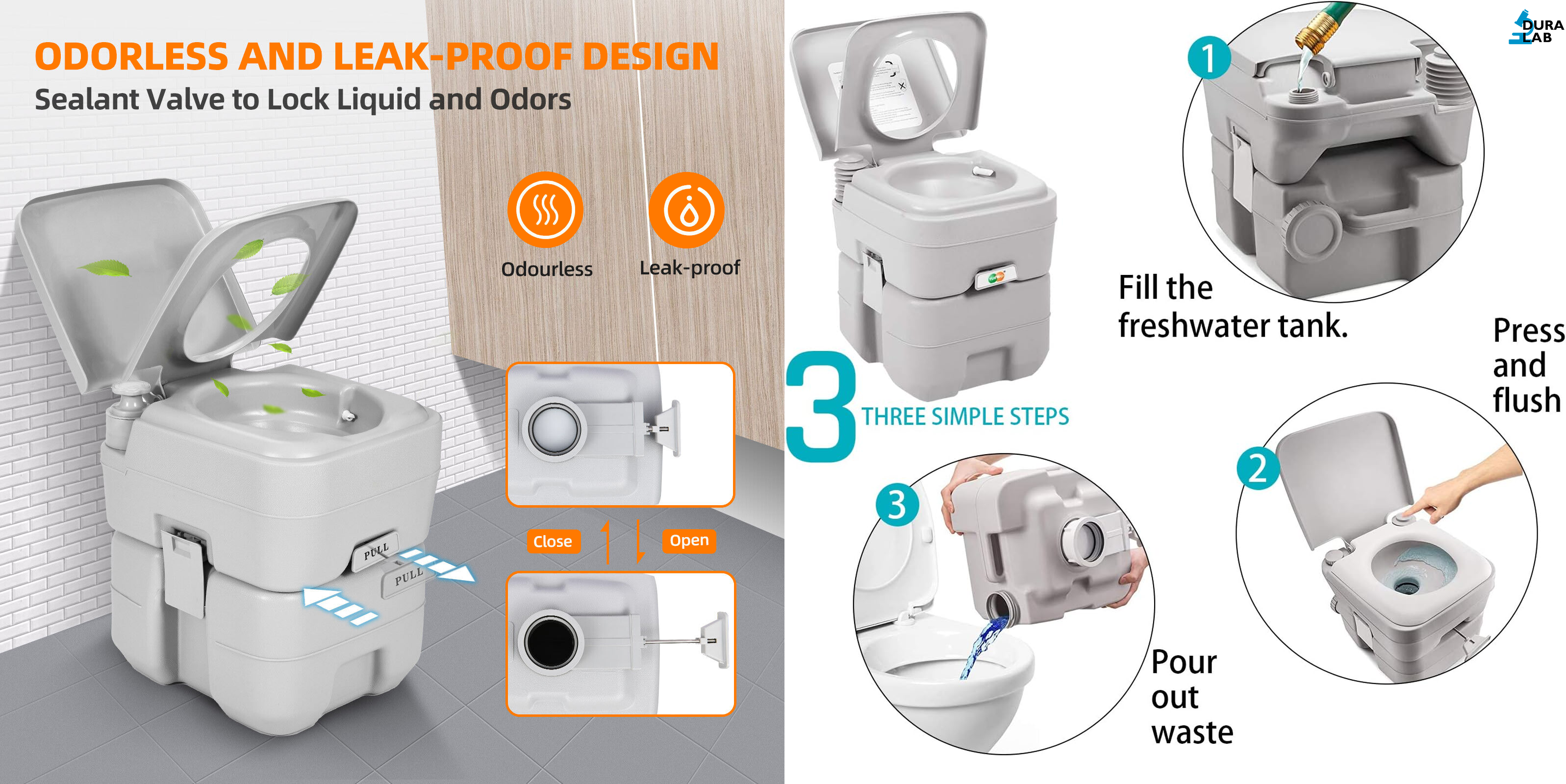 - Both the waste and freshwater tanks have large, strong caps allowing for easy refilling and emptying.