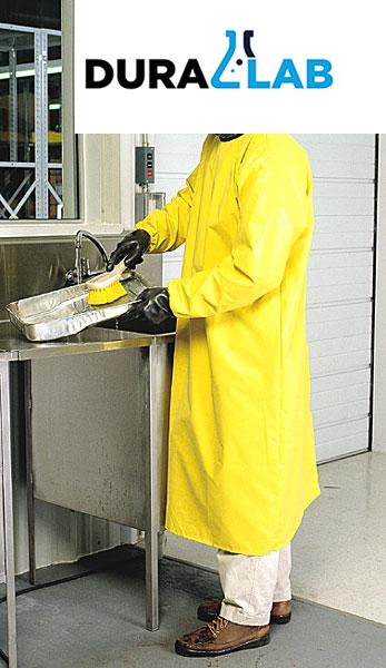 Full front-body protection against oils, tars, lacquers, most acids, caustics and alkalis.