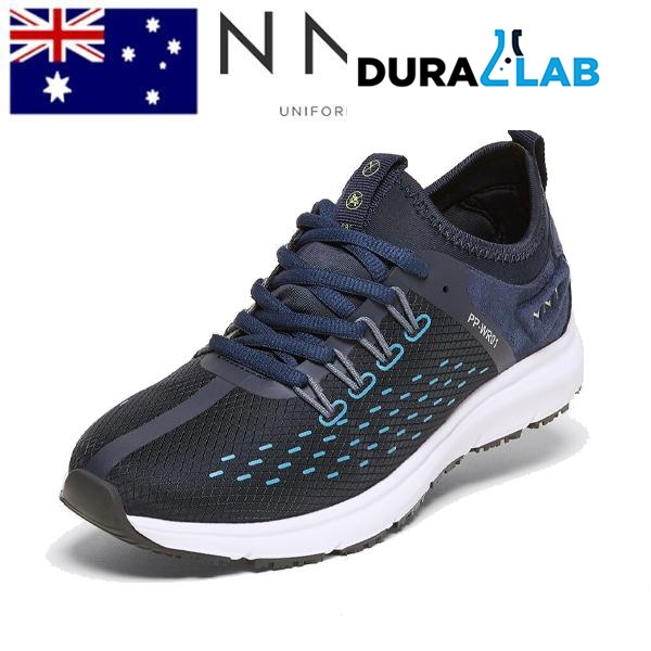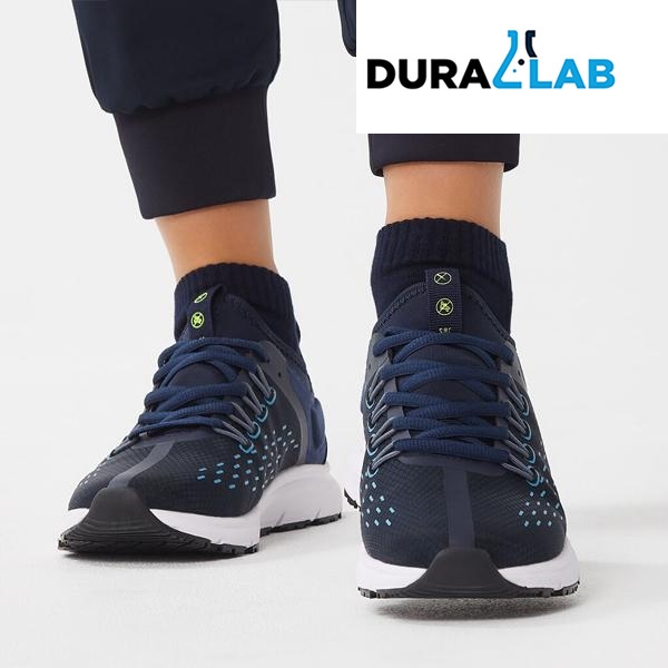 Meet the new Next-Gen Vigor, an athletic, sneaker-inspired shoe packed with thoughtful features. It's lightweight and super comfortable to wear, ideal for long shifts spent on your feet. A transparent water- and pathogen-resistant coating on the upper, a soft, moulded midsole and SRC-rated outsole for maximum slip resistance are smart inclusions. You'll also appreciate the hidden lace pocket and the 25 gauge hypodermic needle drop protection for extra safety when you're hard at work. The vegan-friendly design incorporates 25% recycled yarn for sustainable style. Cast in classic navy with cobalt-blue trimmings, the Vigor looks as good as it feels.