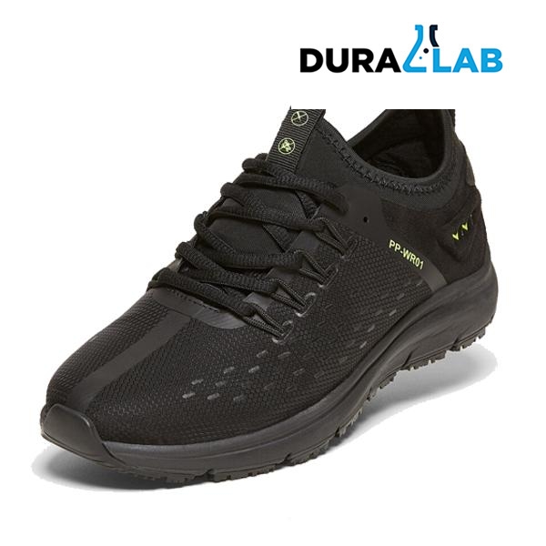 • Transparent textile upper offering pathogen and liquid resistance
