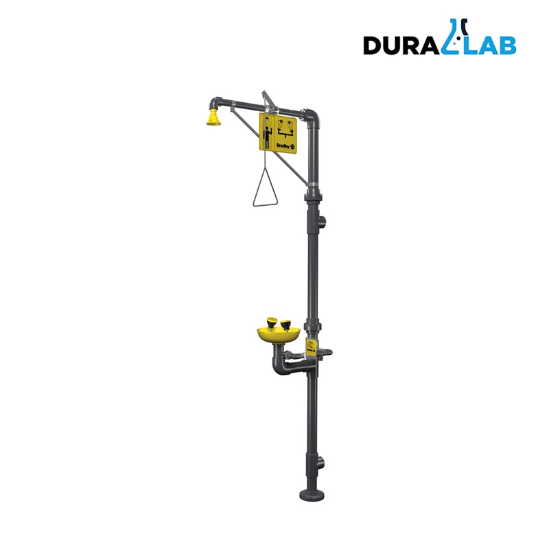 BRADLEY S19-310PVC Combination PVC Drench Emergency Shower & Eye/Face Wash Station with Hand Operation is designed to save space and is durable for highly corrosive work environments. The shower valve operates quickly by a pull rod with a triangular handle. The shower provides a superior wash down with an even spray pattern. The eye/face wash is operated by a highly visible push handle. Safe, steady water flow under varying water supply conditions from 30–90 PSI is assured by an integral flow control in the sprayhead assembly – See more at: //www.kullysupply.com/bradley-s19-310pvc-combination-drench-shower-and-eye-face-wash