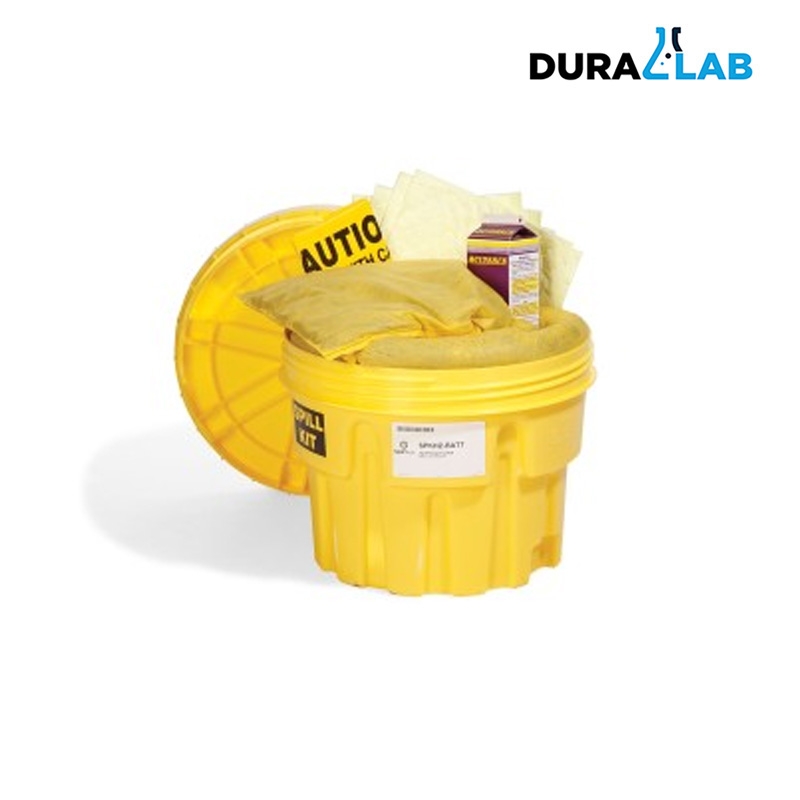 Includes a variety of sorbents to handle a battery acid spill; pre-packed in an X-rated DOT-approved 20-Gallon OverPack. Self-contained Kit stores sorbent products for easy access as needed for spill control; saves time when quick response is necessary. Leakproof, twist-on lid is notched so you can easily tighten it with a 2×4 or pole. Polypropylene material with UV inhibitors is durable, lightweight and chemical-resistant.